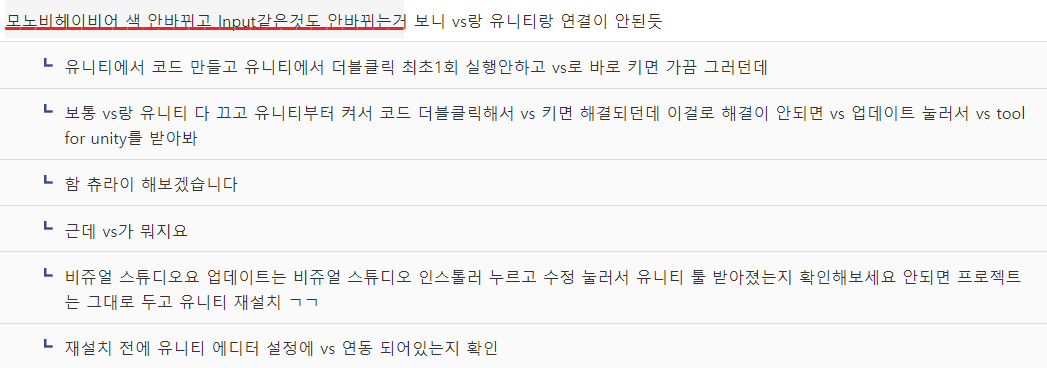 6. VS와 unity 연결이 됐는지 확인한다. 안되었다면 연결